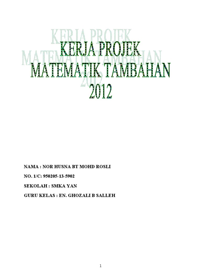 Kerja projek matematik tambahan 2011 may 28 2011 in matematik tambahan. Saya berharap agar dengan adanya kerja kursus ini saya dapat membentukan diri menjadi yang lebih berdisiplin dan berfikir secara rasional untuk menyelesaian sesuatu masalah dengan baik. HeheNANTI KARANG KIWI DAPATKAN PENGIKTIRAFAN DARI PENSYARAH MATEMATIK OR BEKAS GURU M3 N M3.