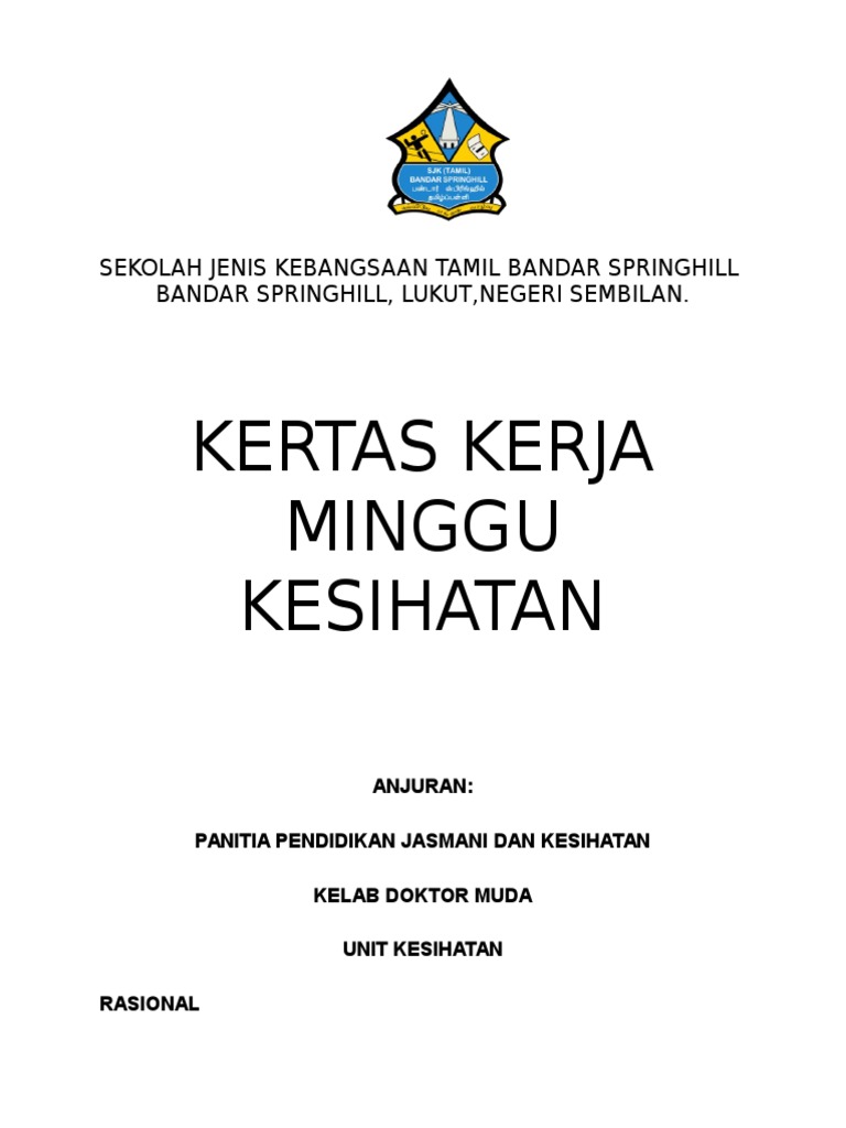 Kertas Kerja Program Kesihatan Sekolah Rendah Pdf