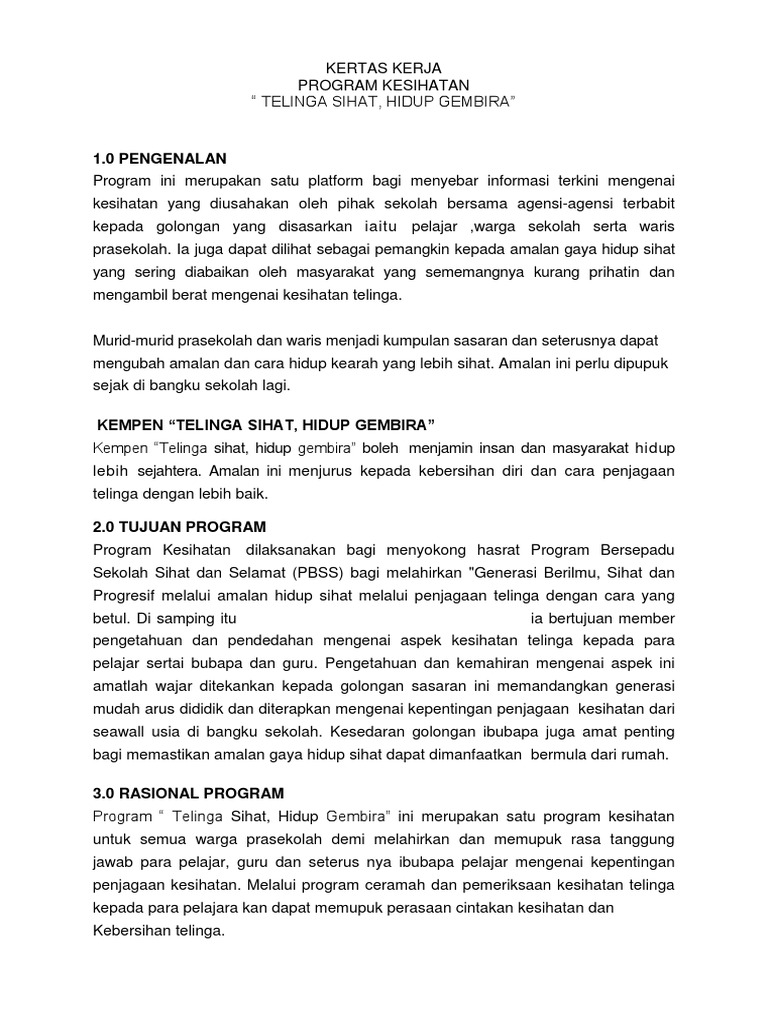 10 KERTAS KERJA PROGRAM PENDIDIKAN KESIHATAN UDARA BERSIH HIDUP SIHAT 20 TUJUAN Kertas Kerja ini disediakan bertujuan untuk memohon kelulusan daripada pihak atasan supaya dapat meluluskan segala aktiviti yang dicadangkan. Here are some resumes of keywords to help you find your search the copyright owner is the original owner this blog does not own the copyright of this image or post but this blog summarizes a selection. Fandy setya gamaliel 3.